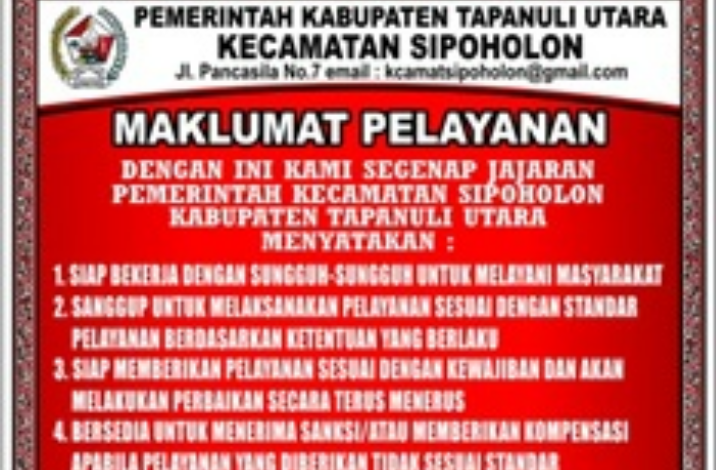 Maklumat Pelayanan Pemerintah Kecamatan Sipoholon